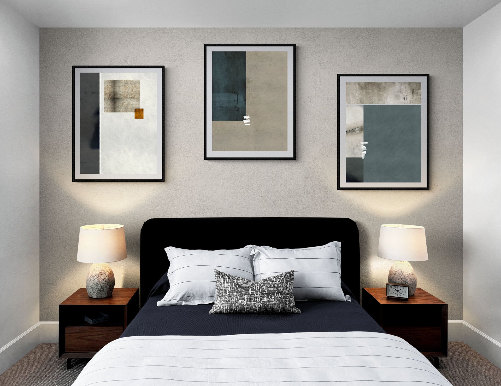 This abstract art set is a perfect blend of geometry, texture and subtle color variations, making it an exquisite addition to any contemporary space.