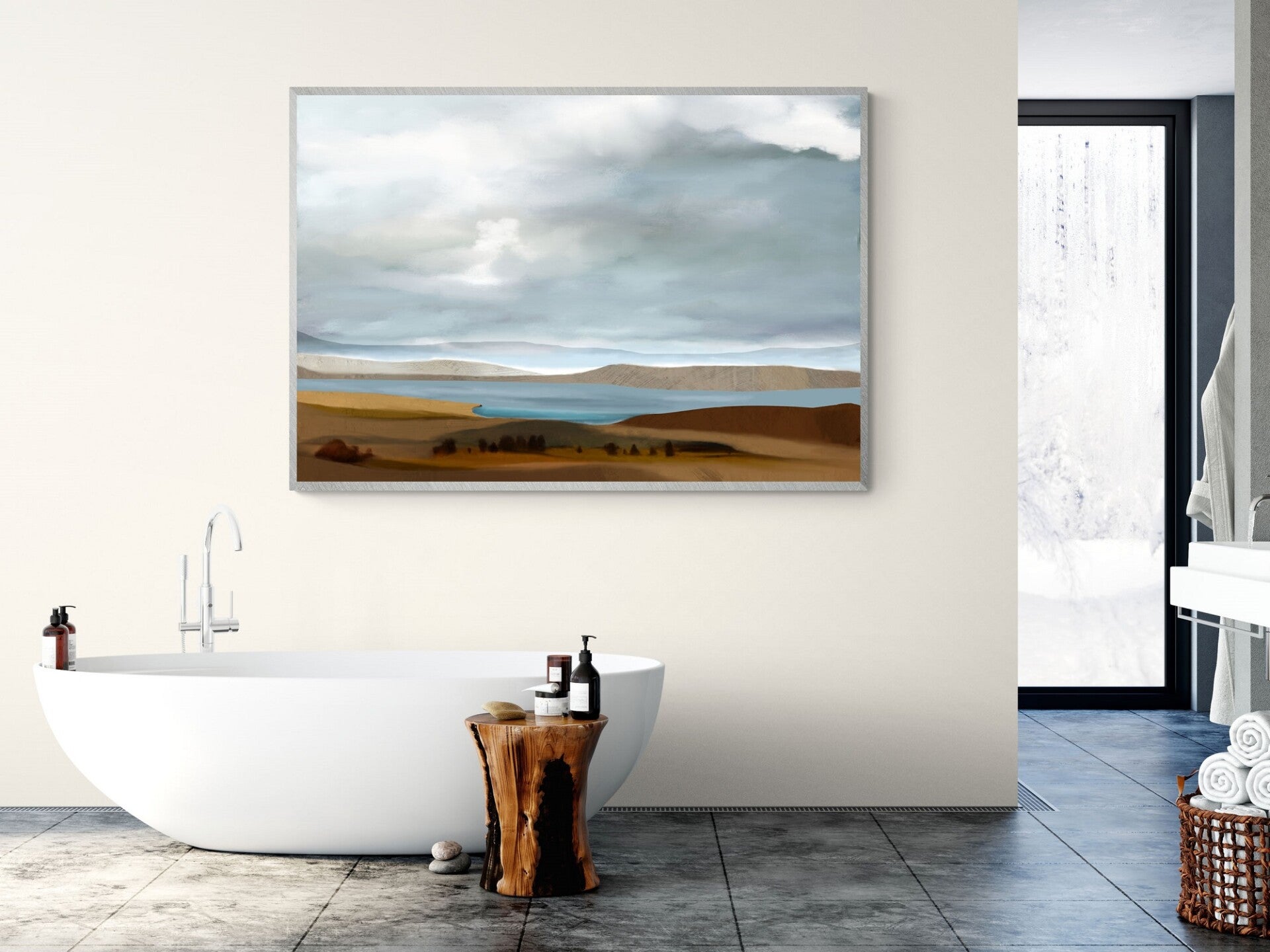 Blue and brown large landscape printable wall art